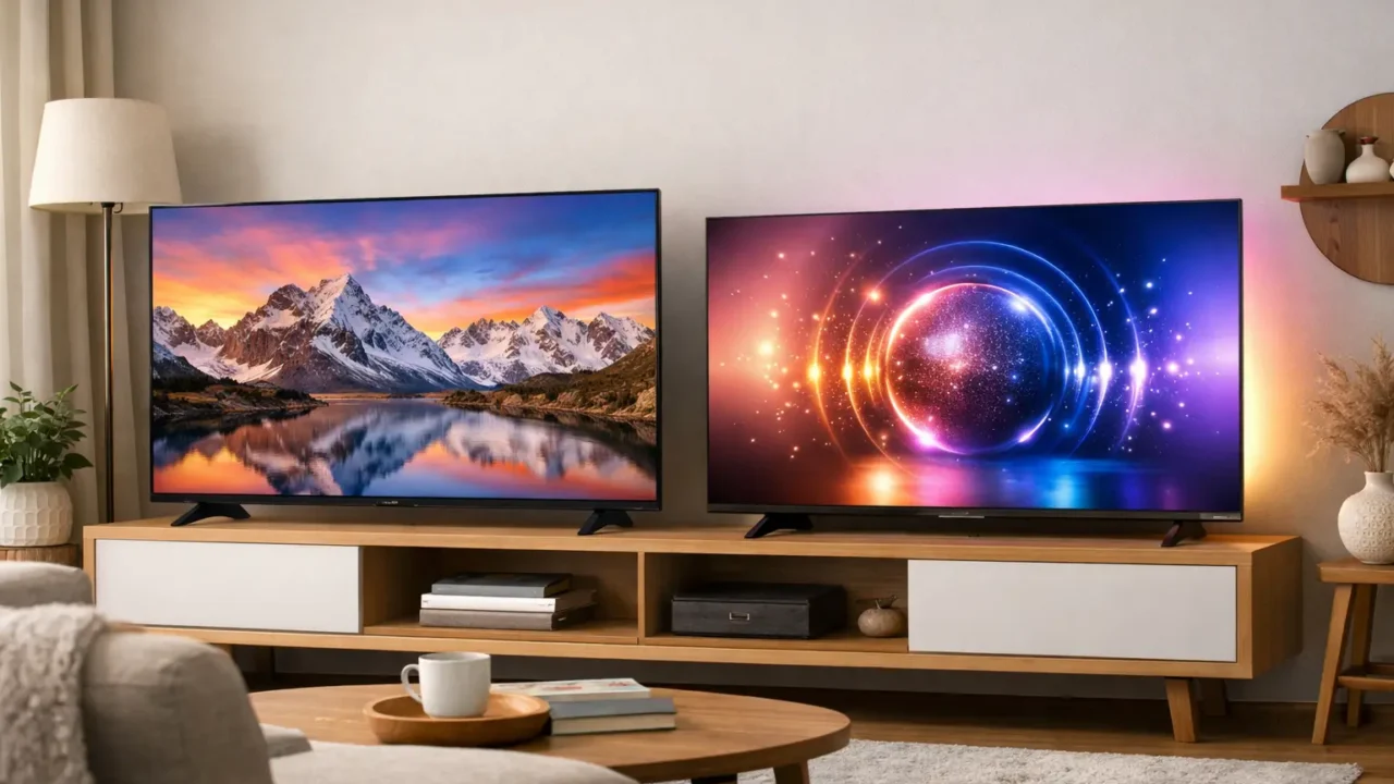A busca por uma TV de alta qualidade envolve a comparação de várias características técnicas, como qualidade de imagem, som e conectividade. Entre as opções disponíveis, a Samsung Vision AI TV 55″ QLED ULTRA 4K e a Philips Ambilight 55″ 4K se destacam por seus recursos avançados e desempenho. Ambas as TVs estão na faixa de R$ 2.600,00 a R$ 4.000,00, oferecendo uma experiência de visualização imersiva. Enquanto a Samsung aposta na tecnologia QLED e Inteligência Artificial para melhorar a imagem, a Philips se destaca com seu sistema Ambilight e suporte para Dolby Vision e Dolby Atmos, buscando criar uma experiência mais envolvente, com cores vibrantes e som de alta qualidade.