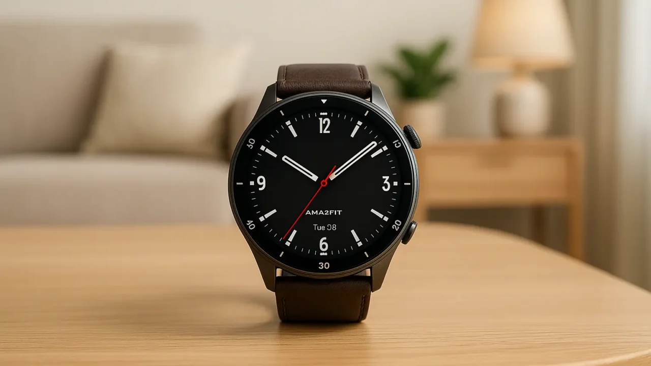 Clássico custo-benefício com AMOLED 1,39″, 21 dias de bateria e coroa giratória que facilita a navegação. Integra Alexa e monitora saúde e esportes com boa precisão.