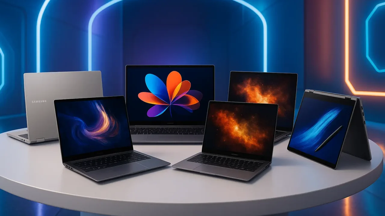 Os principais modelos incluem o Samsung Book 2 Pro, Book 2 Pro 360, Book 2 Go, Book 2 15 e o Book 2 14.